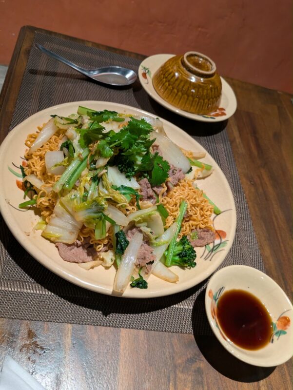 The food finally arrives, and as with all the restaurants here and in Thailand, each dish just comes out whenever it’s ready. The norm is definitely not to serve all the food at the same time, they just start whatever dish first, serve that, and then return to the kitchen for the next dish.