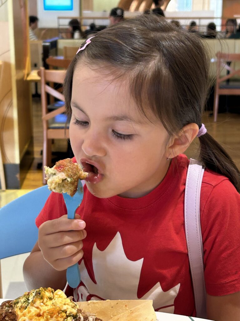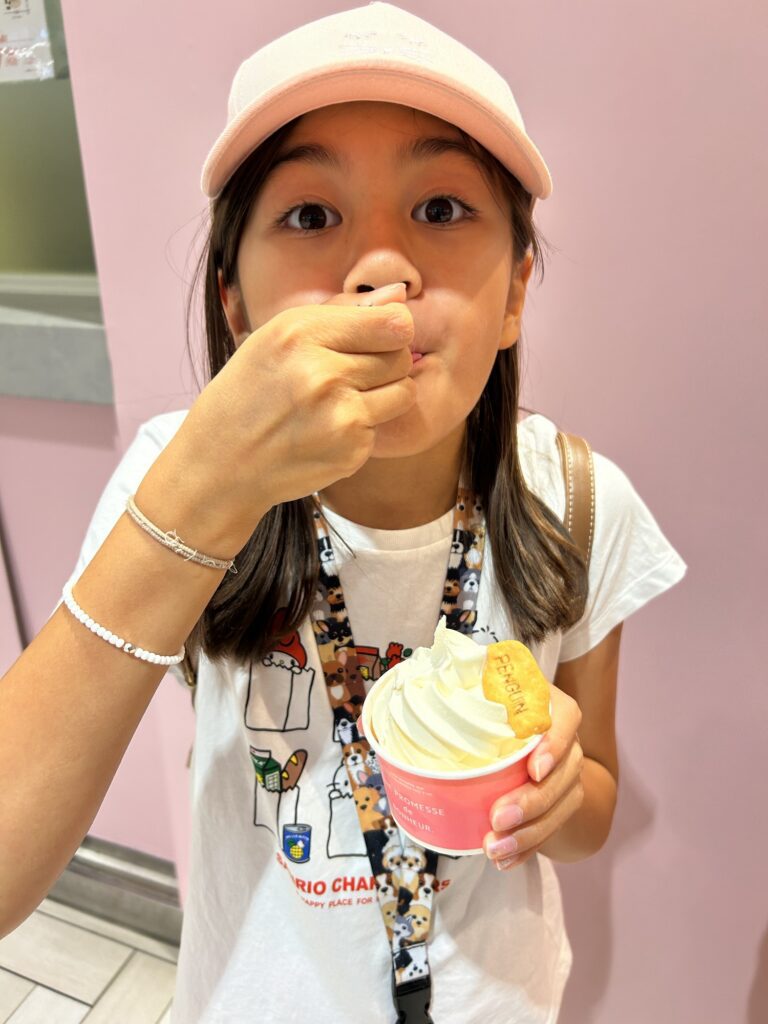 This mall is enormous, and after our afternoon snack, we head for a couple of different stores to browse. It is, as in all other malls, cuteness overload! We suddenly realize it’s 3.30pm, and the girls haven’t had the ice cream we promised them yet. The girls and I head for the cutest ice cream shop we found on our way into the mall, and Joe discovers that the basement floor of this mall is essentially half grocery store, which is at least double the size of the one close to our house! So the girls and I buy and devour our treats (ok ok, I did save Joe some of my Japanese tea latte), and there’s still no Joe in sight. Turns out this new store was so big and so impressive that even Joe, yes MY JOE, got stuck marvelling at the selections. In the end, we now have vegetables for tonight’s dinner and bread for tomorrow’s breakfast, and set our sights for home.