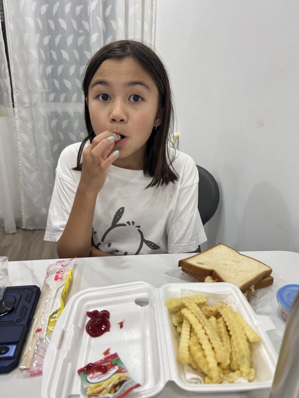 The girls struggle with motivation as they complete their math and English tasks for the morning. When we’re all done, we eat whatever foods we can scrape together and call lunch (I finished up my yogurt with some cereal), and then, only then, do we head out for the day.