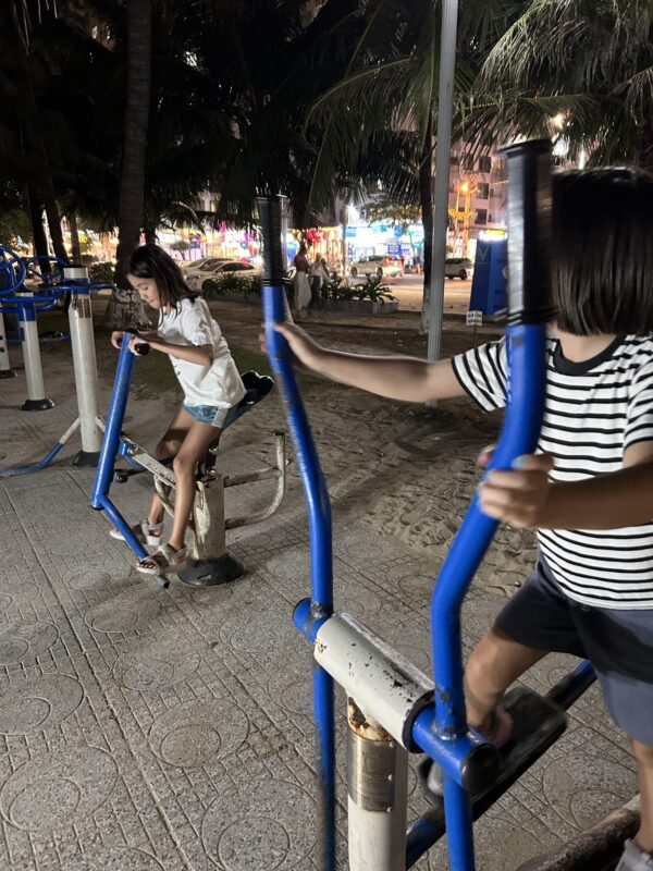 Our destination this afternoon is the climbing café from last week. The girls run straight for the climbing walls, and Joe and I sit down for our excellent coconut coffees. I haven’t had a coconut coffee done this way anywhere else, so I’m always disappointed when I request them. Climbing café does it best!
