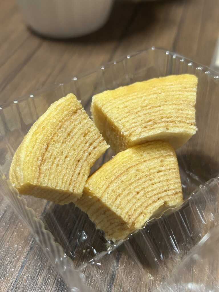 Game done, we headed for the grocery store. This is the one that had even Joe spending more time than expected the other day, and we were hunting for snacks. Tomorrow is Expo day, after all, and we cannot afford to buy lunch, dinner and everything inbetween at the park, so we’re packing snacks! I have been seeing these “Baumkuchen” everywhere, in all the convenience stores, bakeries and grocery stores. I have been skipping them, believing them to be crunchy and crumbly, so we picked up a package, I have to try everything I’m not familiar with! (Except for chicken sashimi, we skipped that the other day…) We grabbed some salty chips, and Maylin found a Pokémon cupcake she really wanted, so that was it. Oh, and the bag of chocolate macadamia cookies we found by the till, I couldn’t resist.