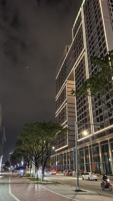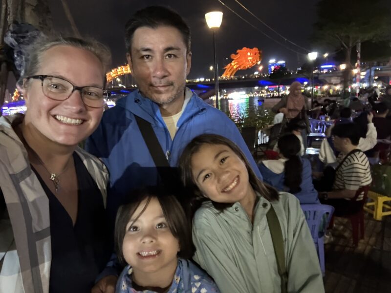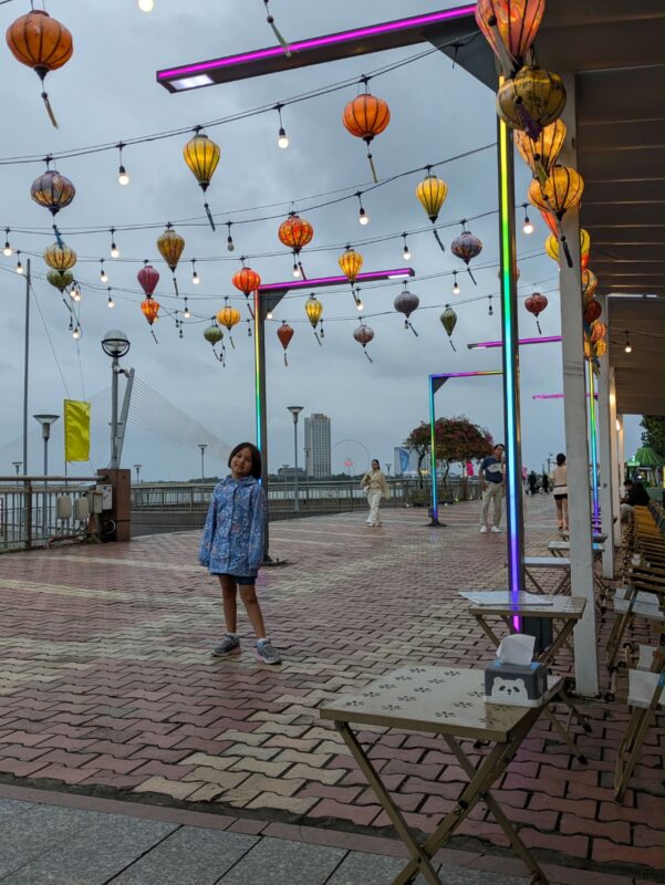 I wake up at 6pm, it’s already dark outside. I’m getting hungry, but don’t want to crawl out of the covers just yet. The plan is for me to walk over to the dragon bridge and meet the others for the fire and water show later, but first I have a phone date with my sisters.