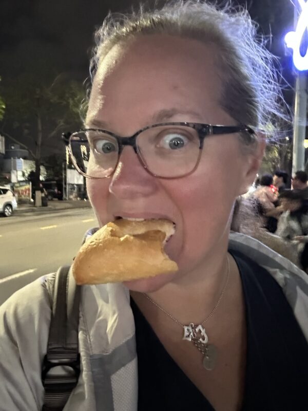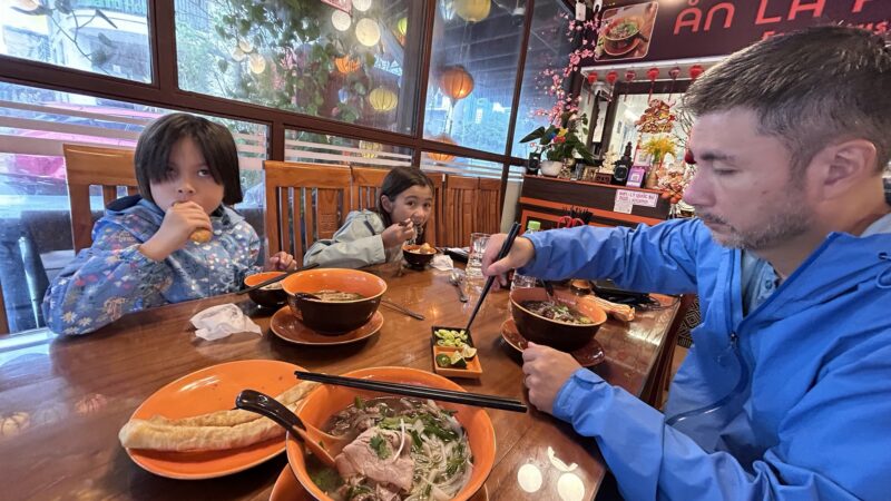 My alarm is set to 5.15am, and I’m so ready to get off this train. All I want is a proper bed and some rest! I brush teeth and am back before the others even wake up. By 5.45am, we’re all ready, and we roll into Da Nang at 6am. We taxi to our hotel and are asked to store our bags (fair enough, it’s not even 7am), and we take another taxi to a place for breakfast.