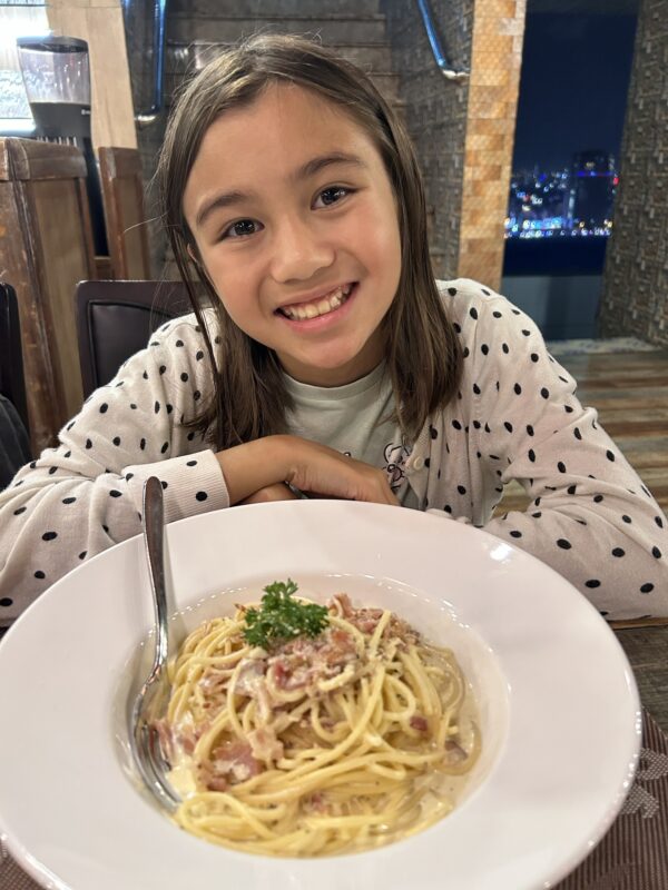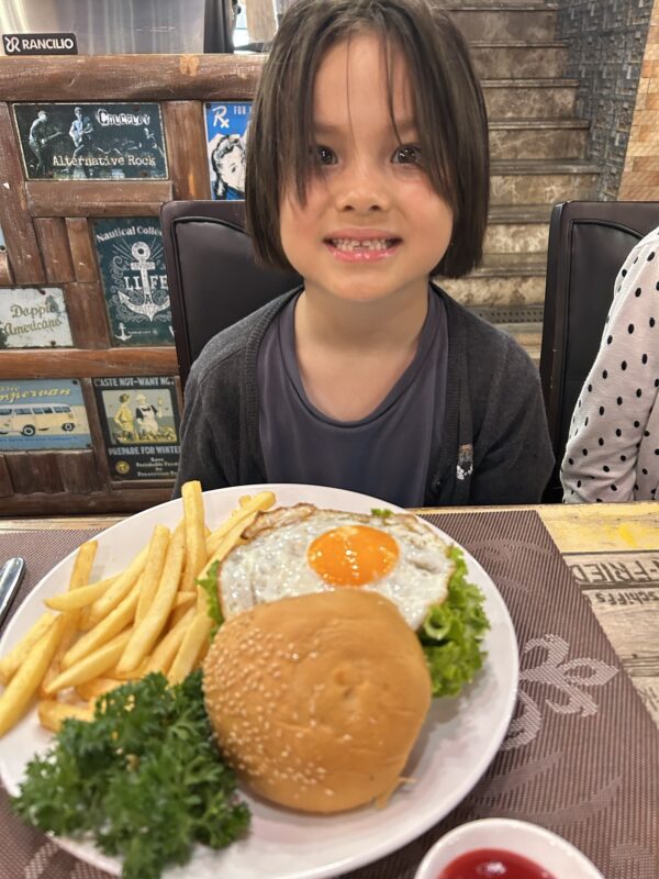 It’s our first morning waking up in Da Nang, and we wake up hoping to catch a glimpse of sunrise out of our East facing balcony window, but the clouds meet the ground and it’s pouring down rain. That was a very good rest in a very good bed, and so Maylin is up, Joe is up and I am up. I roll over and whisper “breakfast breakfast breakfast” in Téa’s ear, because breakfast buffets are one of Téa’s (and mine) favourite things.