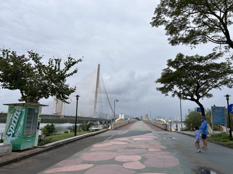After our little platform got super busy with other guests, and the solo guy at the table next to ours started speaking loudly on his phone and smoking, we left. Our walk back was more pleasant, with the sun really trying to peek out from the clouds. But it was getting close to noon, and we still had a room to pack up, so we walked back along the river and then back across the bridge.