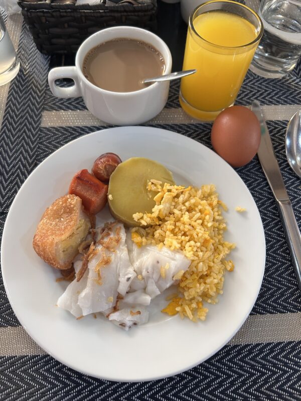 Joe goes for a walk this morning, as the sun is out! I REPEAT, THE SUN IS OUT! FULLY! The moment the door clicks behind him, the girls and I are awake as well, these beds are fantastic, and we wake up feeling well rested. I message him to let him know we’re heading for breakfast, and he plans to join us there.