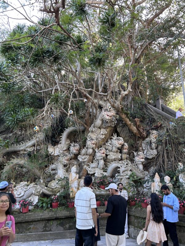 Our first stop is the carving shop right across from the Marble Mountains. Of course, part of our tour is a mandatory visit to a store that sells all things marble, and most of the carvings are enormous statues and water features, perfect for a garden or grand entryway. Who’s got that sort of room in their suitcase? Not us!