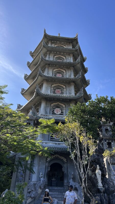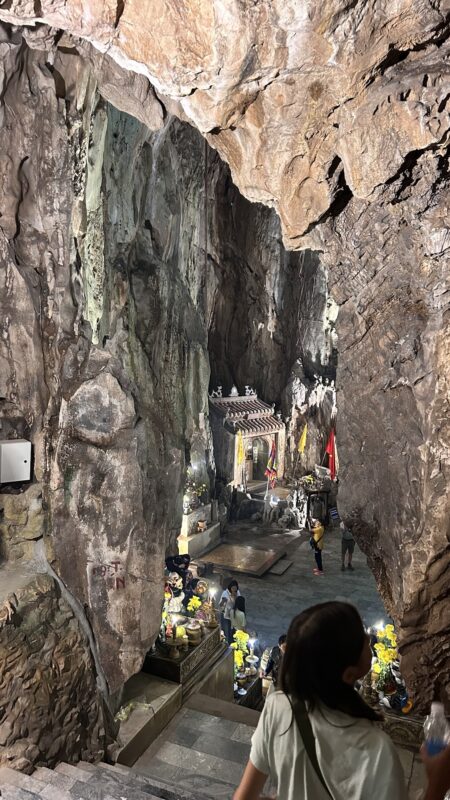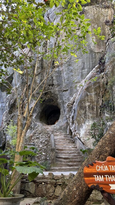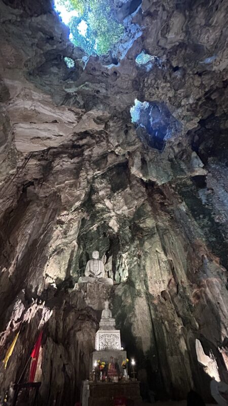 The Marble Mountains are five limestone mountains that pop up in an otherwise very flat environment. These mountains have always been spiritual sites, and many kings and buddhists have built towers and pagodas here. There is a network of caves and tunnels here too, drawing so many tourists every day, they even built an elevator to get them from the bottom to 1/3 of the way up. It might not seem like much, but that bottom set of stairs was the hardest ones to climb!
