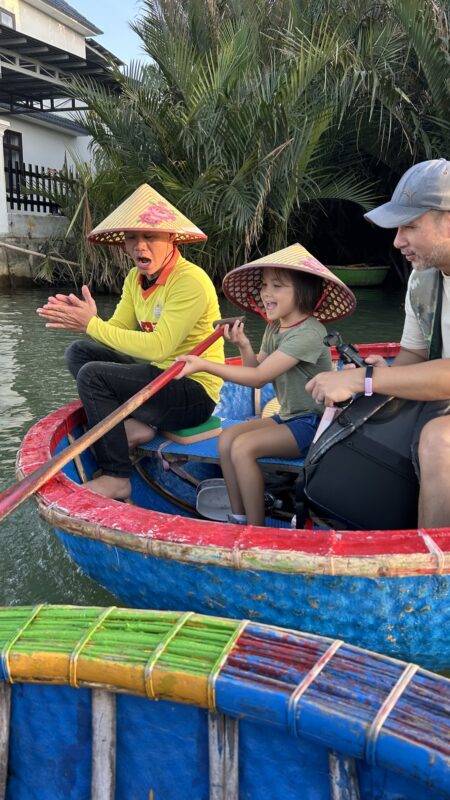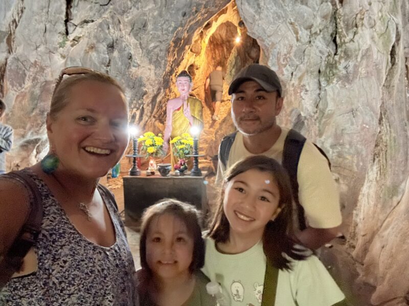 We walk back to the pho place I had picked, as it is close to where the tour will pick us up. It’s one of the busy places where they barely nod in your direction before your food is on the table, and please can you finish eating so you can leave and the next people can eat? Hence, no photos. No time! Joe and I had a bowl of pho each, and the girls split a bowl. It’s satisfying, but a very rushed experience, and before we know it, we’re on our way to the Novotel to meet our bus.