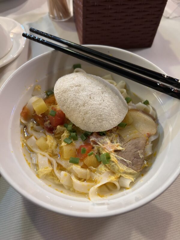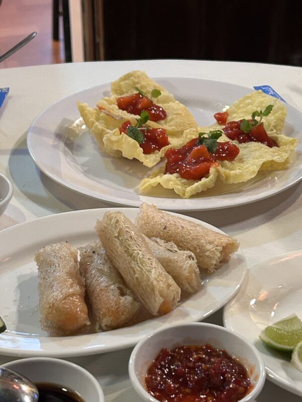 Our next stop was dinner. As with any tour meal, we were shuffled into a restaurant, to waiting tables, and suddenly we all had food. We started off with a large bowl of noodle soup, and so of course the girls and I were full after this. Then came spring rolls, broken rice with chicken, soup and watermelon. Way too much food, but at least we were all full!