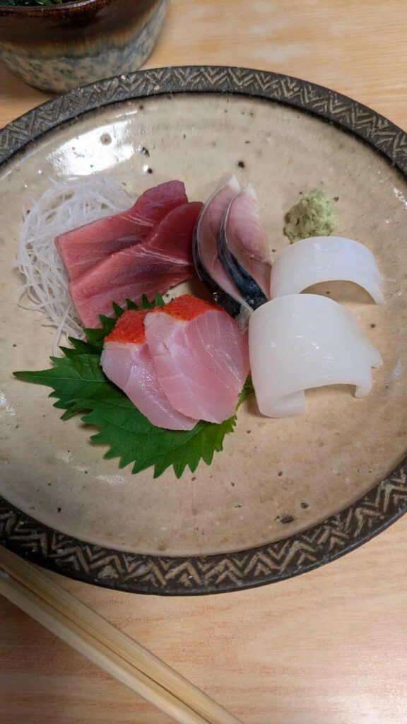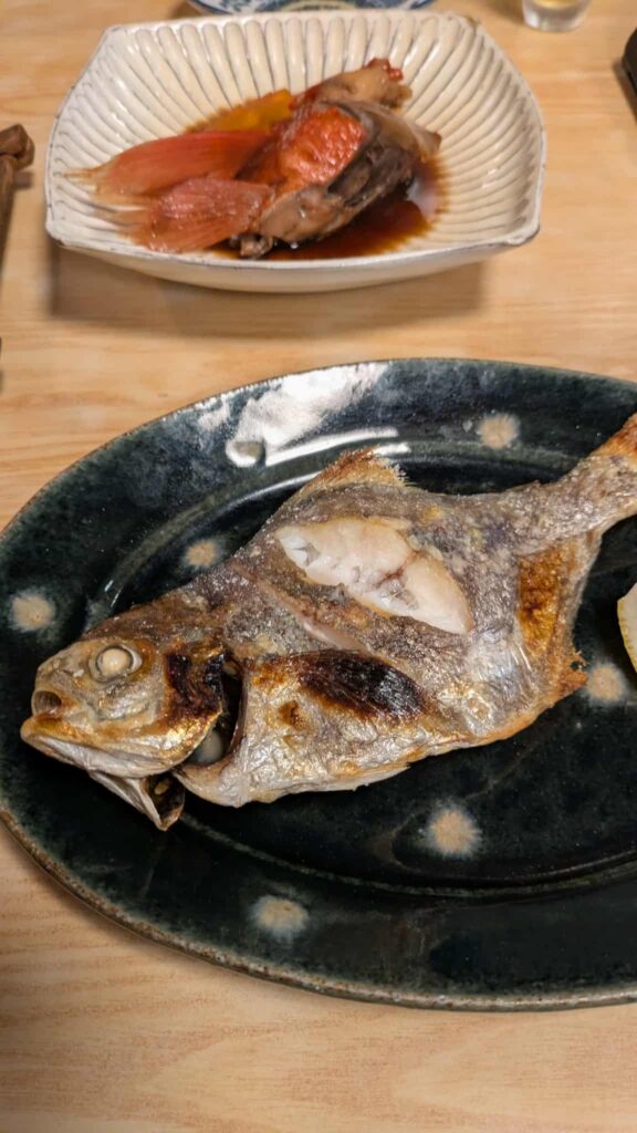 (Later that night…) I woke the girls up at 5.45pm for our 6.30pm dinner reservations. Cranky only describes half of the situation! Dinner was only a short walk away, complicated by the need to get more cash from 7Eleven (it’s random and impossible to tell in advance which places are cashless and which ones are cash only). We show up at a beautiful little traditional Kaiseki spot called Mineya, and it’s full on traditional, beautifully crafted and composed small dishes. So incredibly delicious!! Of course the girls ate very little, being beyond tired and only tempted by (Téa) fried chicken (of which she ate maybe 1/3) and (Maylin) a rice ball (of which she only ate half). Joe and I feasted (and I mean thoroughly enjoyed) dish after dish after dish of regional and seasonal small bites. Have you ever heard of a fish called Alfonsino? Yeah, me neither!