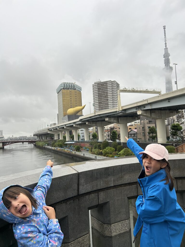 We didn’t have far to go for our next stop, which was the Cultural Tourist Information in Asakusa, located right next door to Denny’s. We were picking up Joe’s new Japanese sim card, and the girls collected their first decorative souvenir stamp for their book. Hopefully it will be full of pretty stamps by the time we leave Japan! We climbed the stairs all the way to the 7th floor, however the viewing platform was closed due to rain, and the blackout curtains made this purely a cultural visit, with no views seen. They did have a really cool wooden 3D map of Tokyo, and we could point out where we are staying and which bridge we crossed to get there.
