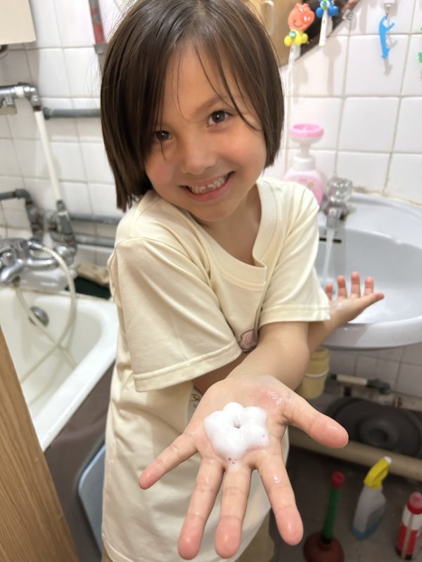 We take a bus home from the mall, and because the bus stops at the shopping centre closest to us, I am able to stop by and get some things we need. Like this fun foaming hand soap for the bathroom: