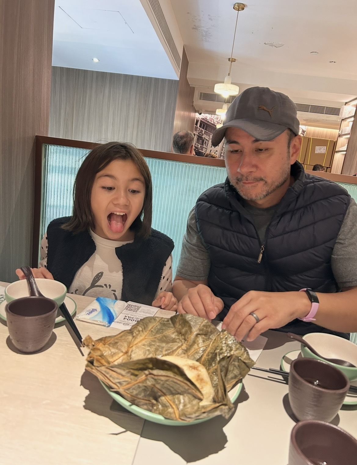 The first thing to arrive, is the sticky rice wrapped in a lotus leaf. This is the dish, that when Joe and I had it out in Vancouver in our early days in 2011, I asked him to learn how to make it. The next time he was home with his mom in Windsor, he learned, and has been perfecting this skill ever since. It’s a quick and easy weeknight meal at our house (because I don’t have to lift a finger, how much easier could it get??), and the girls love it too.