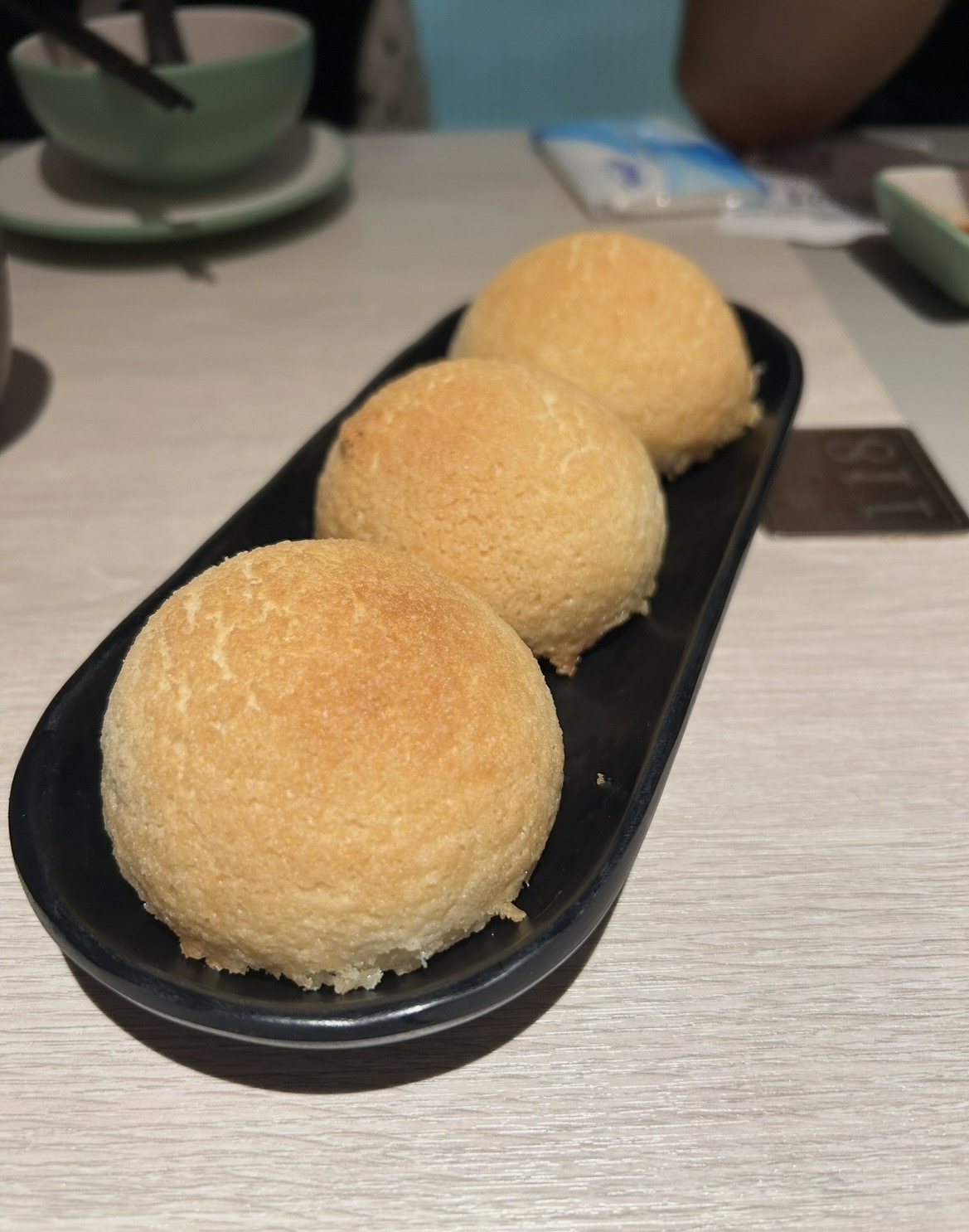 When we get to the restaurant, we see a few people scattered outside the entrance, and a machine to punch in number of diners in our party. Our hearts sink. How long will this wait be? We get a number – 109 – and are invited straight in. I think maybe the few people outside were smokers?