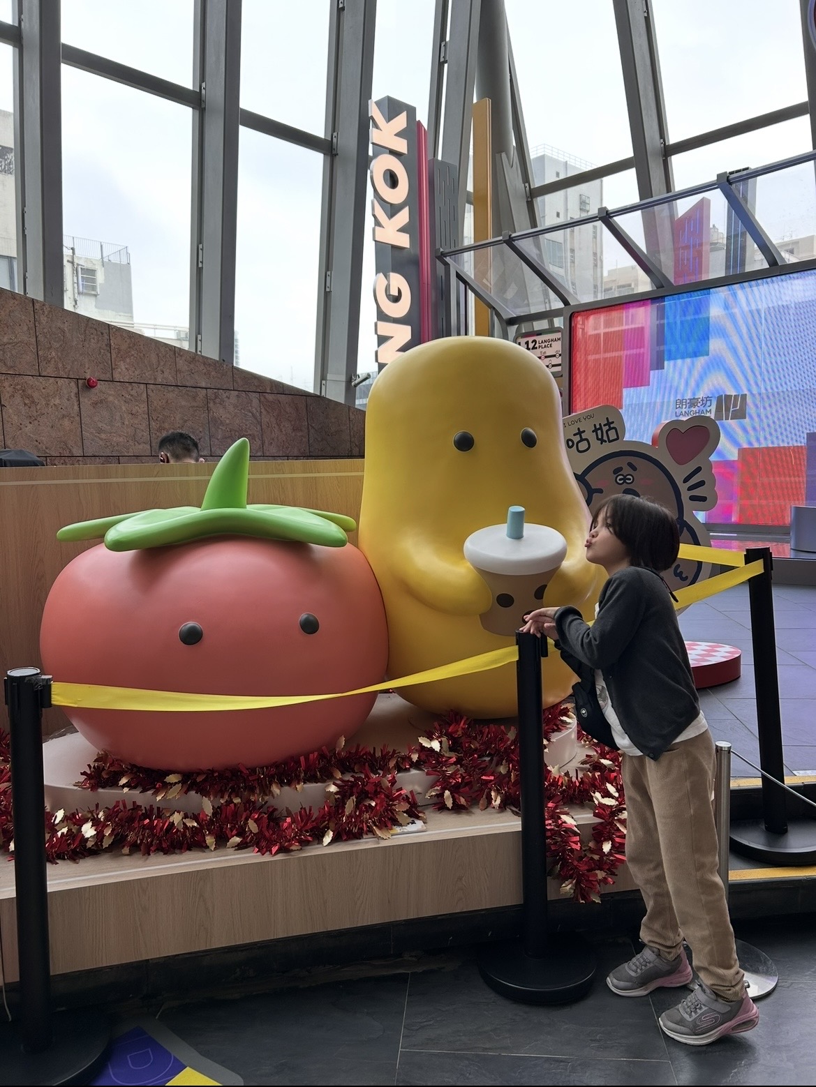 I love a dentist office that’s inside a fun mall! It means that any dental discomfort or sadness can be instantly wiped away by visiting our favourite places. We head up two enorma-escalators and end up on the 12th floor. First things first – posing with cute characters: