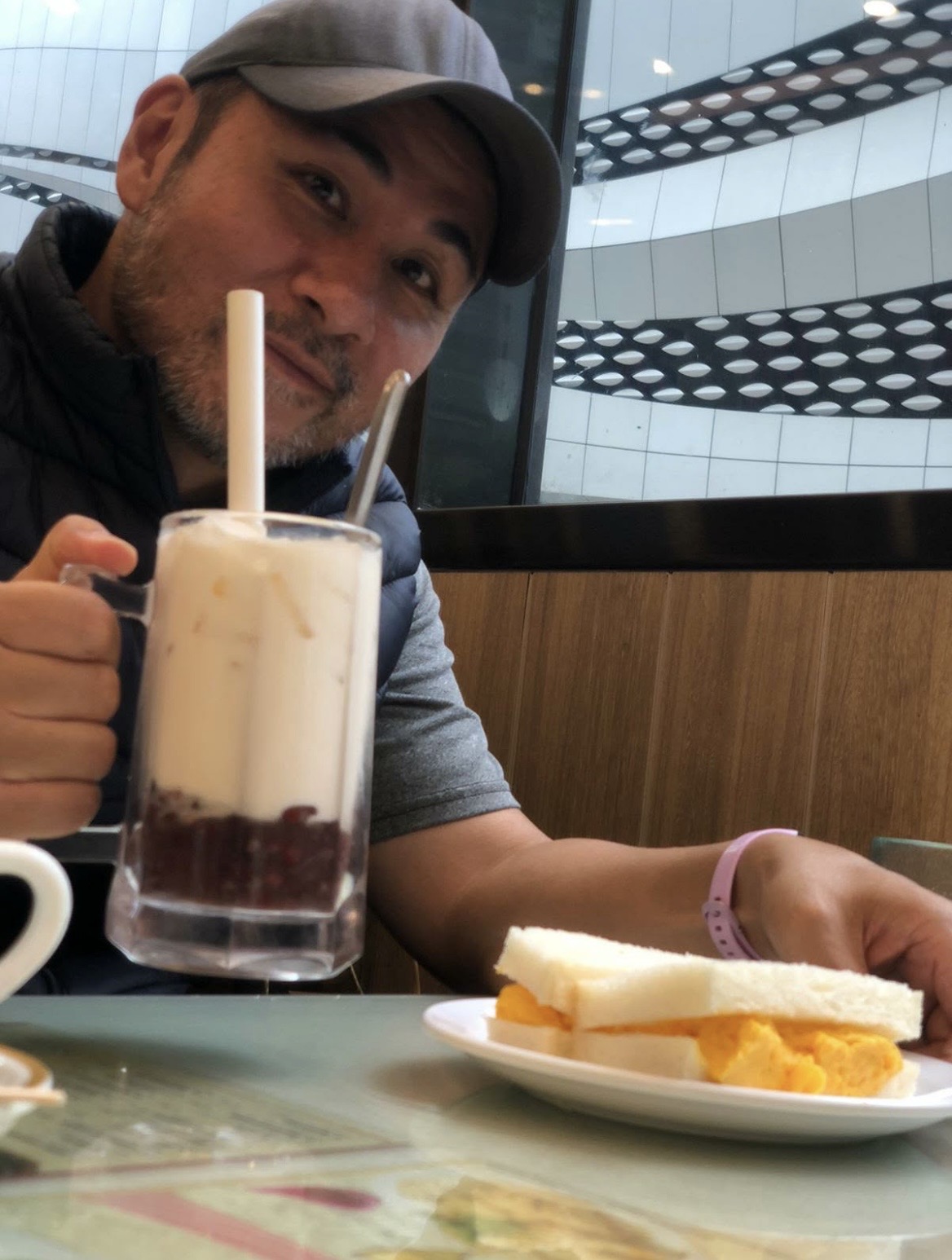 Meanwhile, across town, Joe has been shopping for his 4th pair of glasses with Andy. Then they head to a Cha Chaan Teng, where his snack is a scrambled egg sandwich and a red bean and ice cream “beverage”. Then, due to a long comedy of errors, Joe ends up with two additional coffee drinks, and can hardly move, he’s so full.