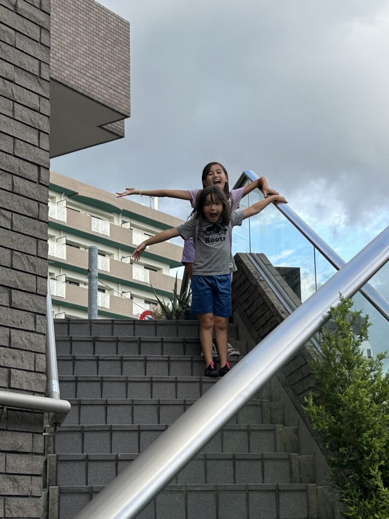 On our walk back home, Joe stopped by a barbershop to enquire about a haircut. It didn’t take much more than a staircase, and the girls were off goofing around again! I’m loving the connection the two are getting this year! 24/7 together is intense, but I think (and hope) it’s gluing the girls together forever.
