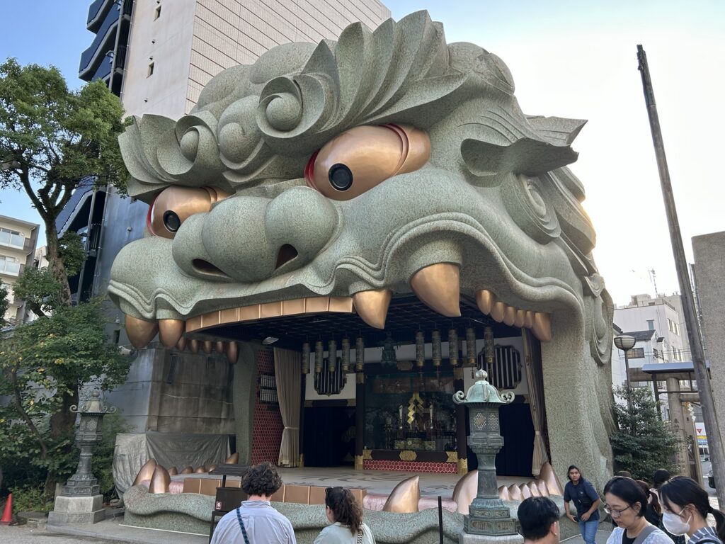 Only minutes away from the busy shopping districts and tourist traps, take a right here, round an alley there, and suddenly we find this small oasis, maybe half a block in size, with a Shinto Shrine and a lion head shaped performance stage.