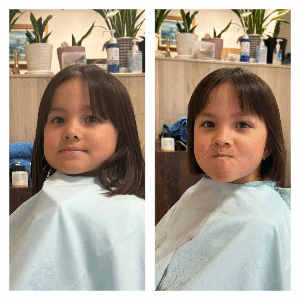 It was a small salon, two seats separated by a big shelf cutting the room in half. It felt like a mom, pop and daughter operation, the daughter did a good job on both Joe and the girls.