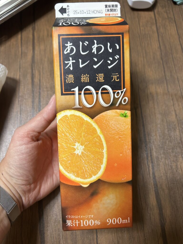 Téa loves orange juice, but we have discovered that all juice is not created equal. In Japan, if a carton had a drawing of an orange, it’s orange flavoured. If it has a picture of a whole orange, it contains some orange. If the picture shows a sliced orange, then it’s pure orange juice! It took us a while to learn this, but I think we’ve finally got it now…