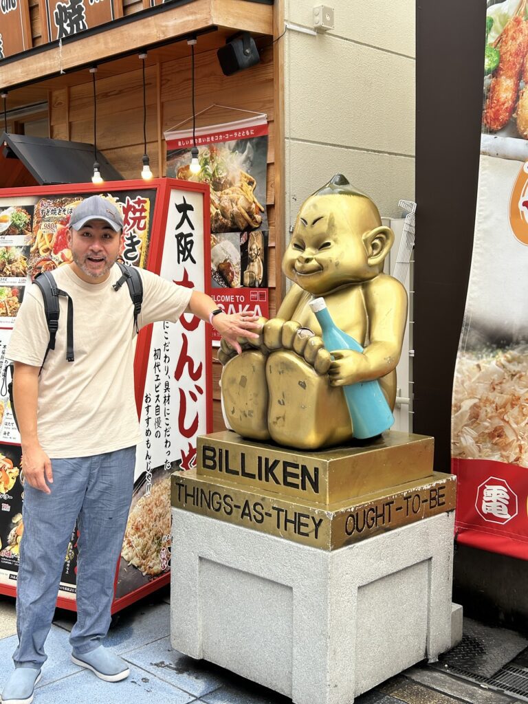 When we finally got to Shinsekai, it was another partially covered network of market and restaurant alleys. Suddenly, Joe said “here it is!” and started rubbing feet! Billiken is a very famous character in Japan, even though his creator is an American lady, and he’s also a mascot for Saint Louis University. If you’re lucky, maybe you’ve received an Alaskan Billiken figurine as a souvenir?