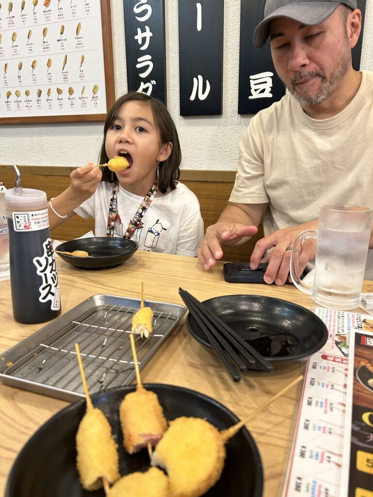 This area has endless restaurants, but we felt like they were mostly kushikatsu (deep fried food on a stick), so that’s what we ended up having for lunch. We ordered a few different things on a stick, like pork, chicken, Japanese yam, cheese, quail eggs, I forget the rest. We also ordered gyoza and a bowl of deep fried octopus (honestly the tastiest dish of them all).