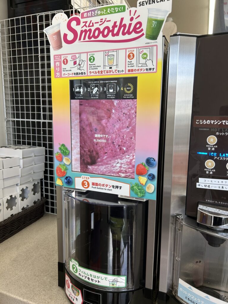 The girls and I left the house around 2pm, and walked down towards the playground with the great climbing wall from last time. There were too many, too old boys there for the girls to want to hang out, and also unbearably hot. So hot in fact, that we decided a 7Eleven smoothie was the only solution. We haven’t had these since Tokyo! Téa had her usual berry smoothie, Maylin tried a new banana milk smoothie, and I went with my usual green smoothie. Delicious and cold!