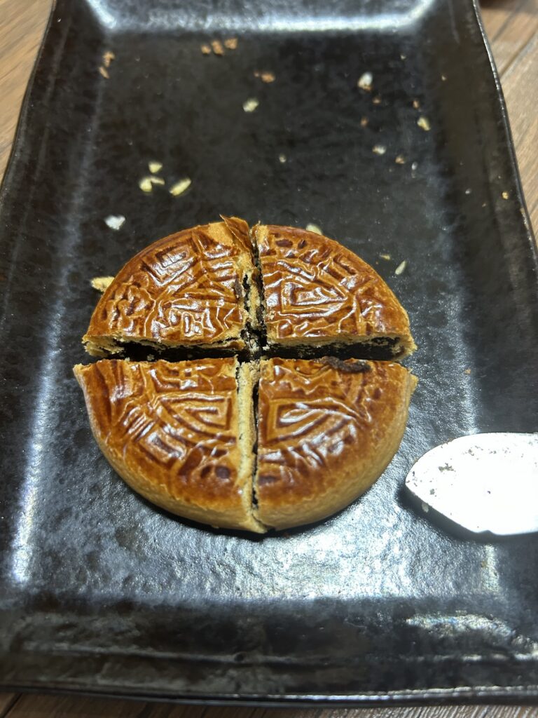 After these were devoured, we decided two were not enough, and we tried the mooncake as well. All delicious, but we all have our personal favourite. The last two have to wait until tomorrow!