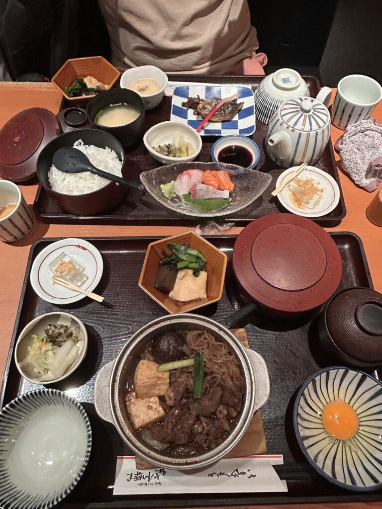 We didn’t have groceries for dinner, and so when I passed a poster on the restaurant level where Téa and I had our snack, I sent it off to Joe. I was craving sukiyaki, my favourite meal from my last trip to Japan, and I hadn’t had it yet this time around!