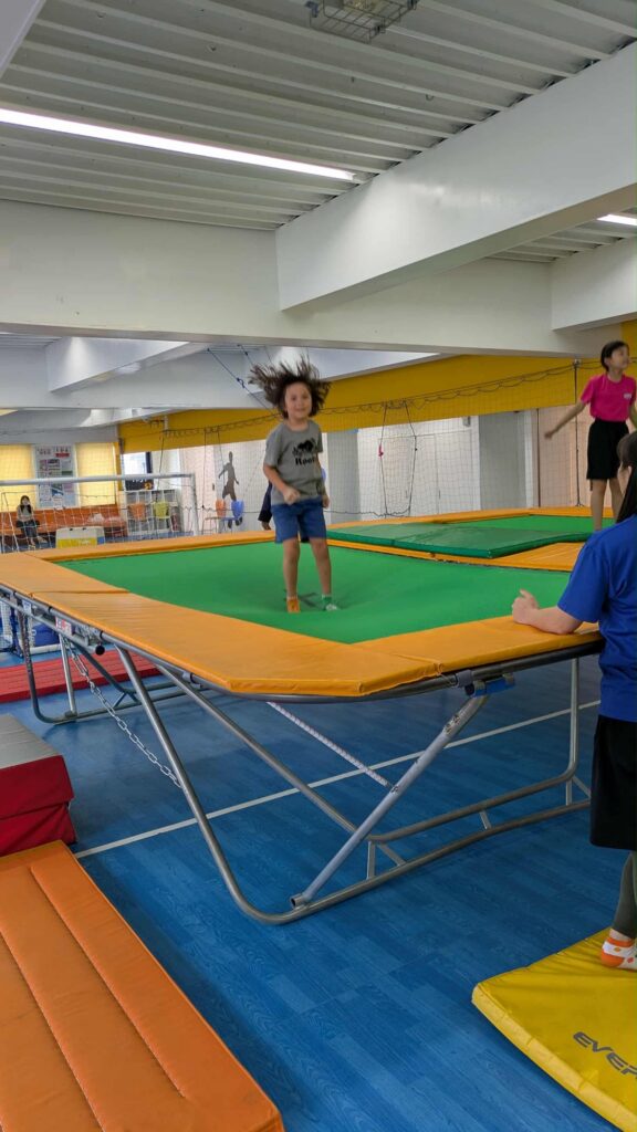 After that exercise, we were all hungry, hot and ready for lunch. We had the rest of our Thanksgiving chicken stew for lunch, and then rebuilt our beds. In the afternoon, Joe took the girls back to Cups, the sports club where the girls go bouldering on Thursdays. Because today was a holiday, the sports club had a “try everything we have to offer” event, a 75 minute window where everything was open, with instructors to guide the kids in whatever they wanted to try out. The girls had such a great time! They went on the trampolines, there were little zip lines set up with the gymnastic bars, they bouldered and much, much more!