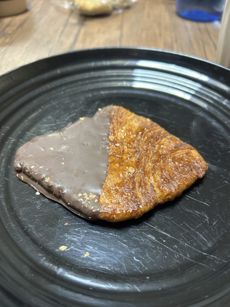 At home, after the girls showered off their sports day activities, we could finally dig into the desserts meant for yesterday! The girls had picked some pressed croissants that we’d been wanting to try every time we went to the grocery store, and definitely and unfortunately go into the large category of “looks better than it tastes”. But not bad. Sweet, crunchy, flaky, just not very tasty.