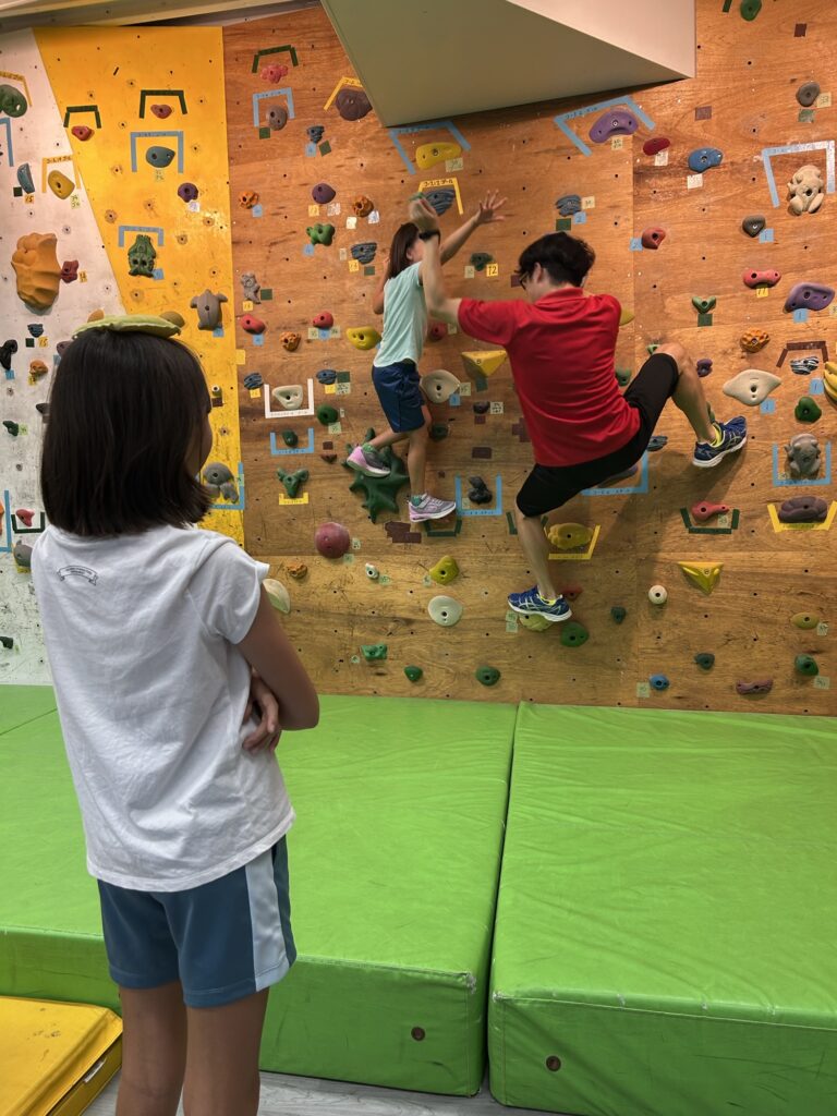 The bouldering instructor on Thurdays teaches the class in English, and there’s only another three kids in the class, so it’s a perfect friendly environment for an hour each week. He manages to make a bouldering class different every time, and has so many games up his sleave! Today was a game of bean bag monkey, where he would try to get the student’s bean bag off their head and the student would try to get his bean bag off his head. His arms are so much longer, and even with giving them many chances, they rarely won. Everyone laughed and had fun with it, and that’s all that counts!