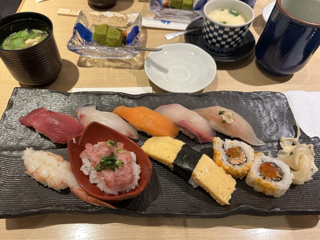 We went one more floor up to the 14th, the restaurant floor, and Kristian craved sushi. Joe and I did not object, we’re always up for delicious sushi! We each ordered a chef curated set of sushi, and the girls had a kids set each.
