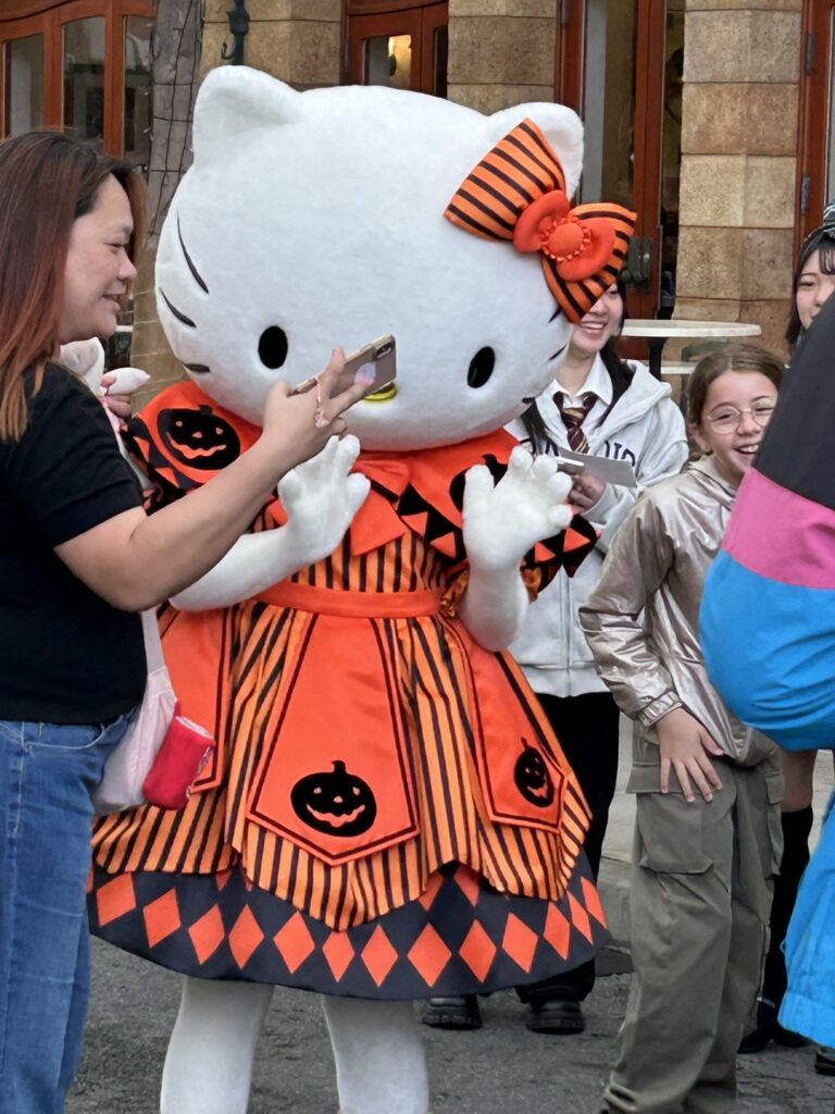 The excitement is palpable already from Nishikujo station, where locals and tourists from far and wide are now all getting on the same jam packed subway the last two stops to the Universal Studios park. There are groups of people dressed up (one entire family dressed all in Where’s Waldo costumes, another where three young boys had matching cow print pants), some more gory and ready for evening than others. The outfits people wear to parks never cease to amaze me, as some of them look like they are going to costume parties, and I wish I had snuck pictures, but how do they even sit in those things??