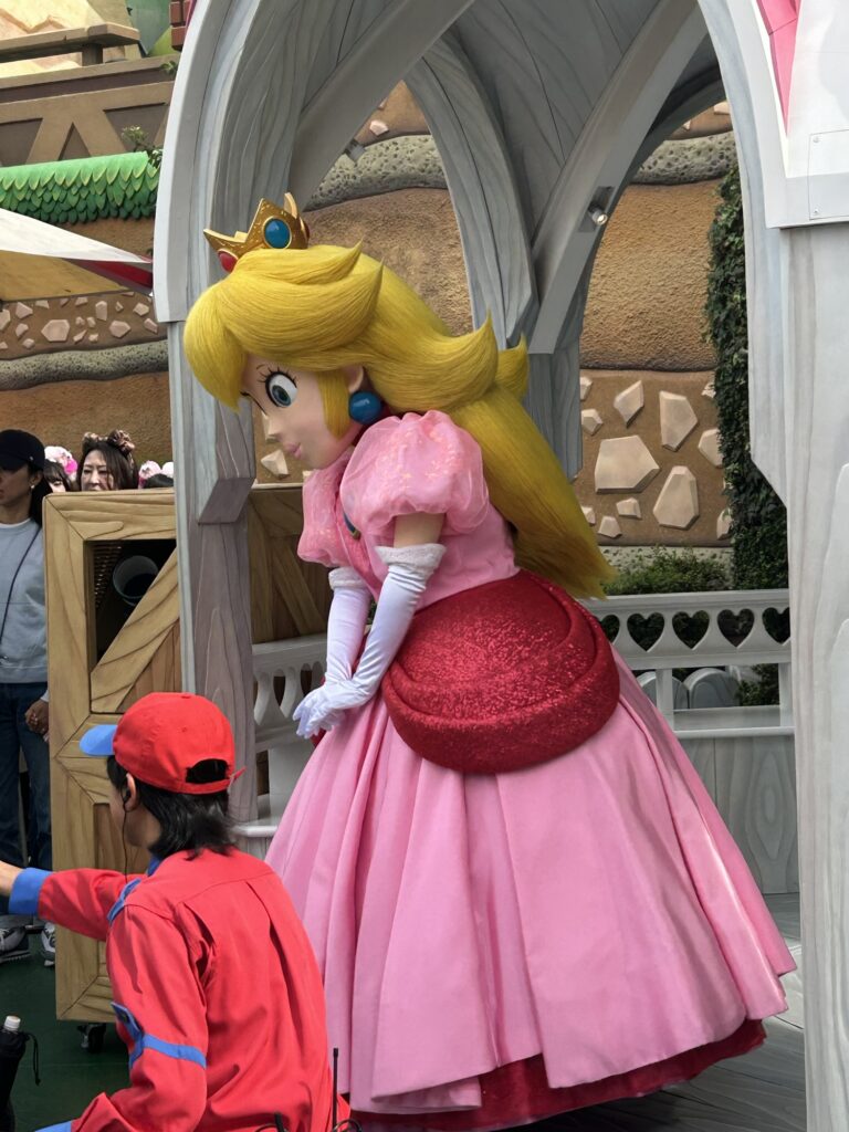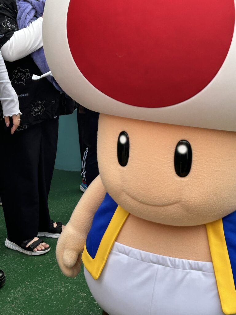 Back down on the ground, we saw that the line for the Minecart ride was now at 195 minutes wait, which even at half that (seeing as Yoshi promised 50 minutes and yet was only 25 minutes) would mean over 90 minutes in line. For travellers like us when you only have one day to experience as much as possible, I couldn’t imagine spending hours in line for just one experience at a time. Lots of locals have annual passes to the park, and sure, spend a day standing in line if you can come back next week and do it again. While we were looking around and deciding where to go next, we spotted a few Nintendo celebrities: