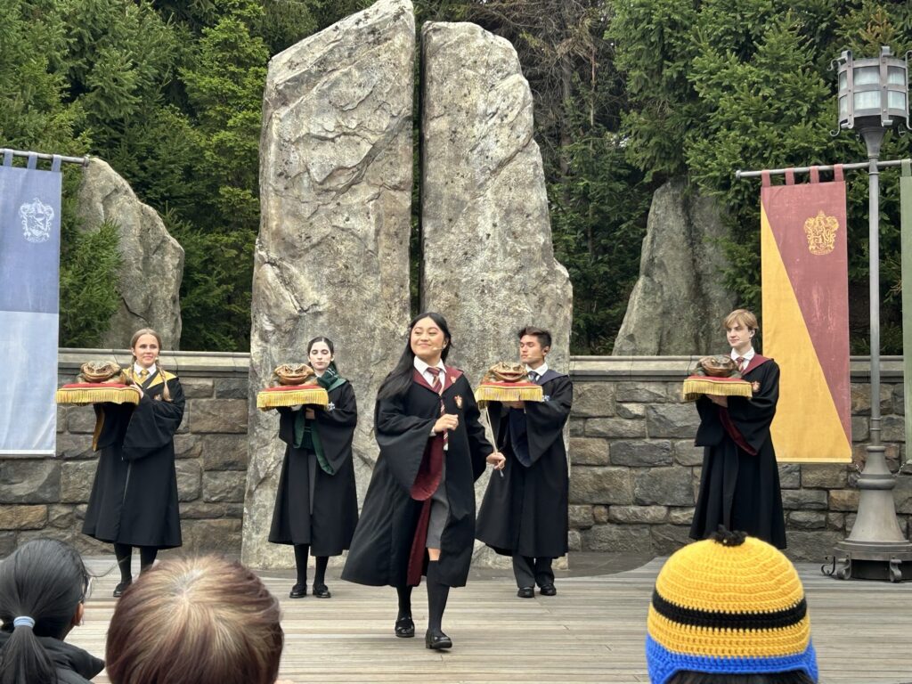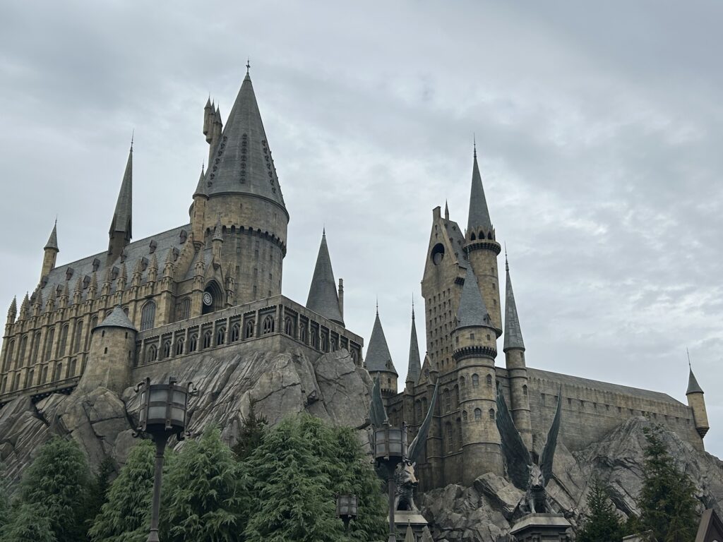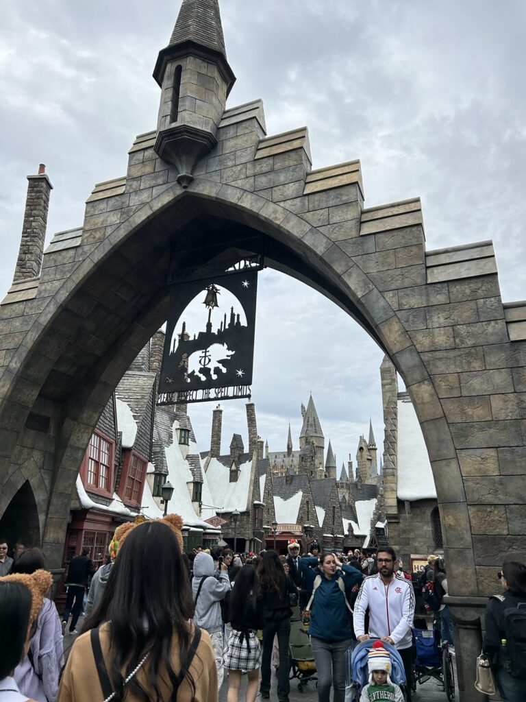 From Minion Park we finally made our way towards Hogwarts and Harry Potter’s world! The way to get there is along a long path through a forest. I’m very glad we went before dark! As you can see, there’s snow on the rooftops, so obviously it was very cold in this part of the park.