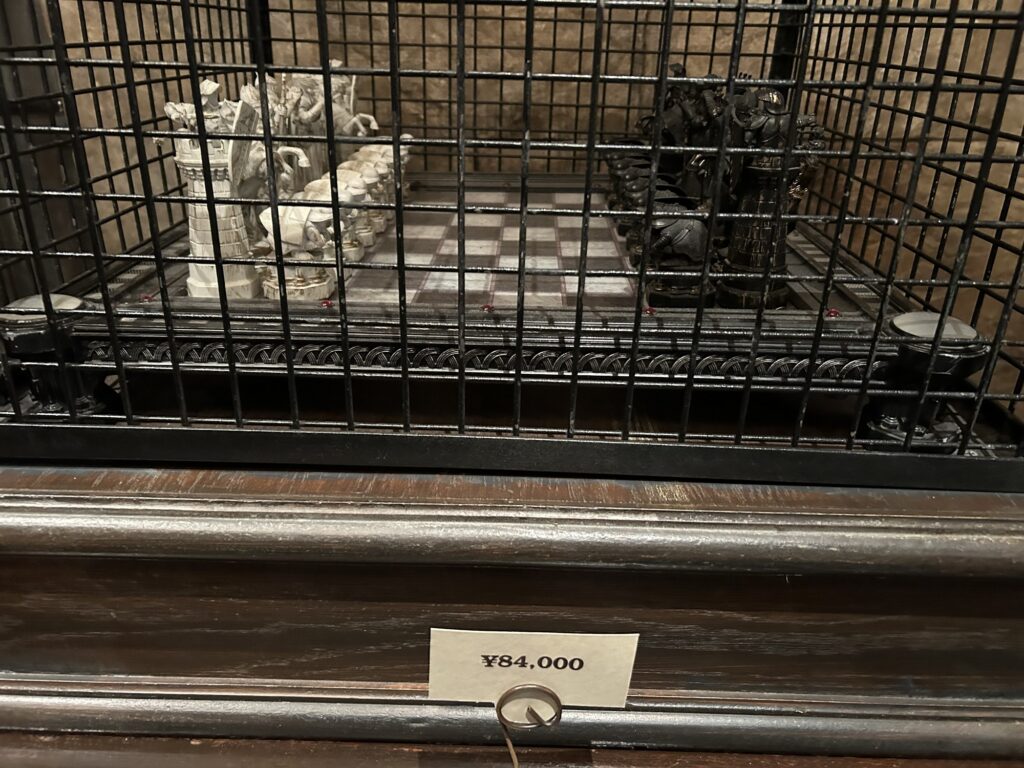Hogwarts castle had Filch’s Emporium of Confiscated Goods as a souvenir store, and we also did not purchase the electronic, magical chess set seen here ($840CA).