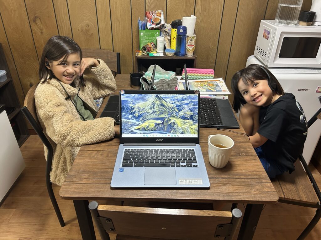 Thursday is science day in the school of Cheng! Both girls had fun working on renewable and non-renewable resources, and reuse, reduce, recycle. When school was done, Maylin went to “Téa’s daycare” for a bit, while we waited for Kristian to come over.
