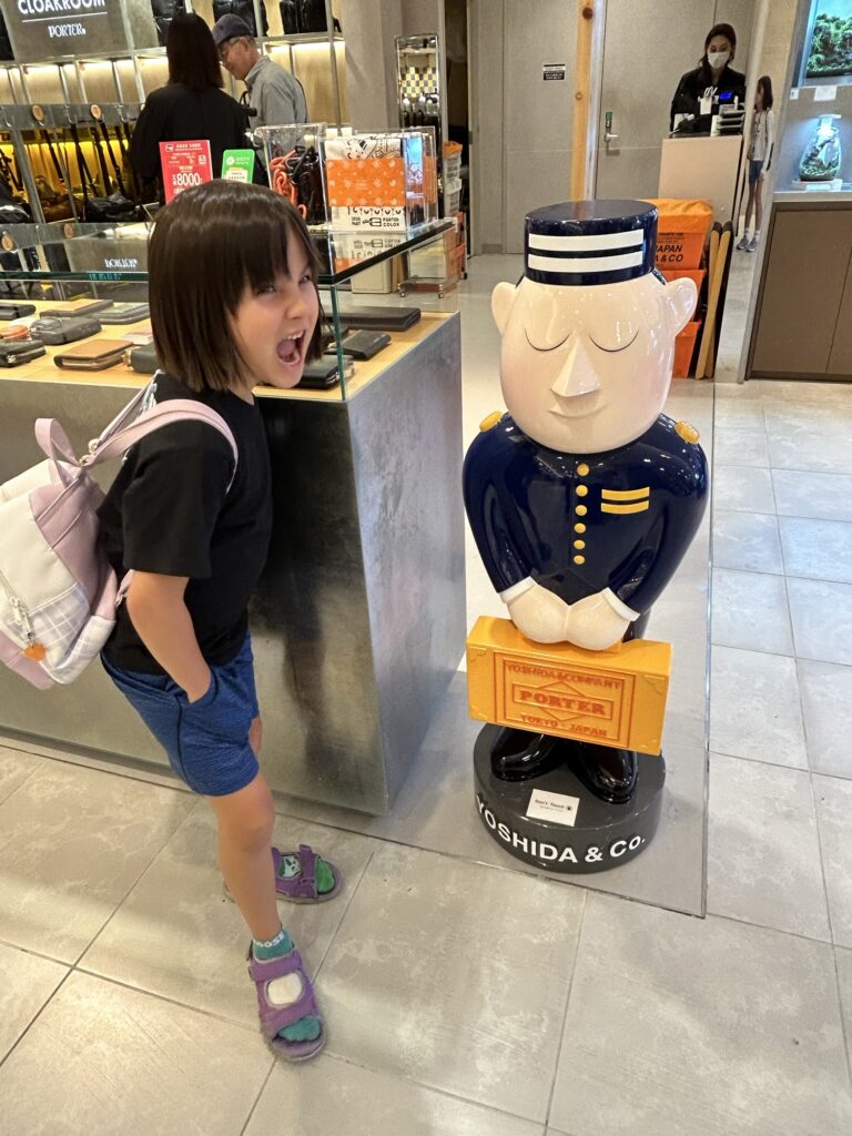 After lunch, we had a lot of floors to travel through on our way back down, with lots of time for browsing. Usually these floors are packed full of stores, and each escalator ends up in the same store layout as the last, just with different goods. But here! Suddenly, everything opened up, and it was a grand open space! You don’t often find “wasted real estate” in Japan, each square foot is well planned and efficiently used. I have to say, what a sight, what a refreshing space! Today it’s an art gallery, but with the space for an audience, it may at other times hold performances of some kind?